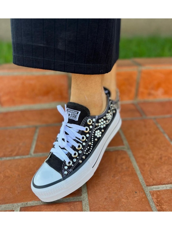 Informações do produto: Tênis All Star Strass Preto - Bordado em Strass